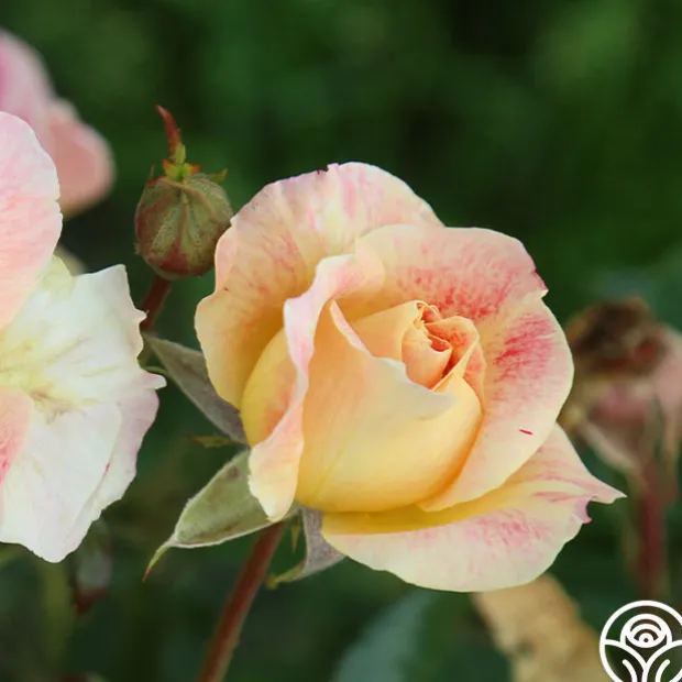 From England comes this showy, repeat blooming, hand-painted rose. Champagne Cocktail is well formed with 3 ½” blooms of soft yellow that are splashed and flecked cherry-red. Choose this rose for its wonderful fragrance and strong disease resistance.