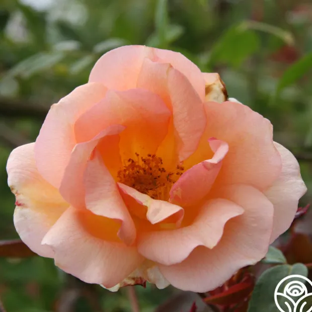 Double 4″ blooms of rich apricot with ruffled petals that open to reveal rich golden centers. This repeat blooming nearly thorn-less rose can be grown as a climber or a shrub.