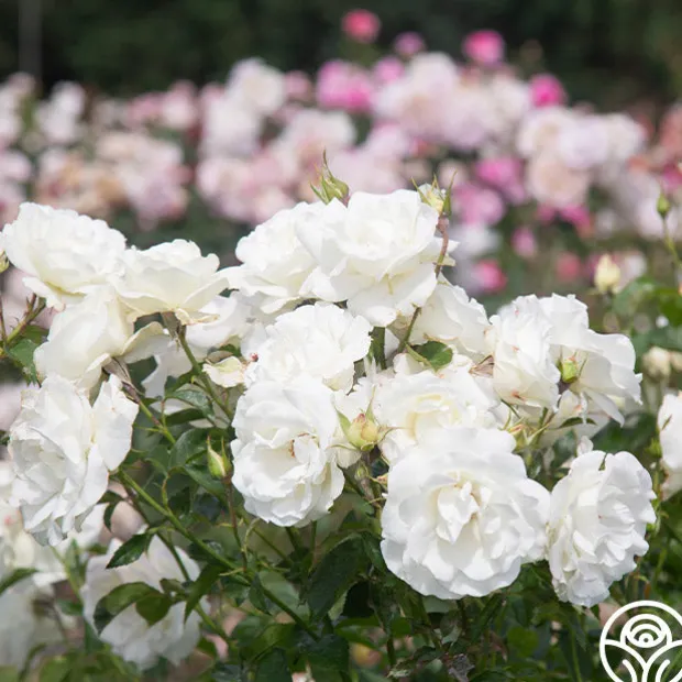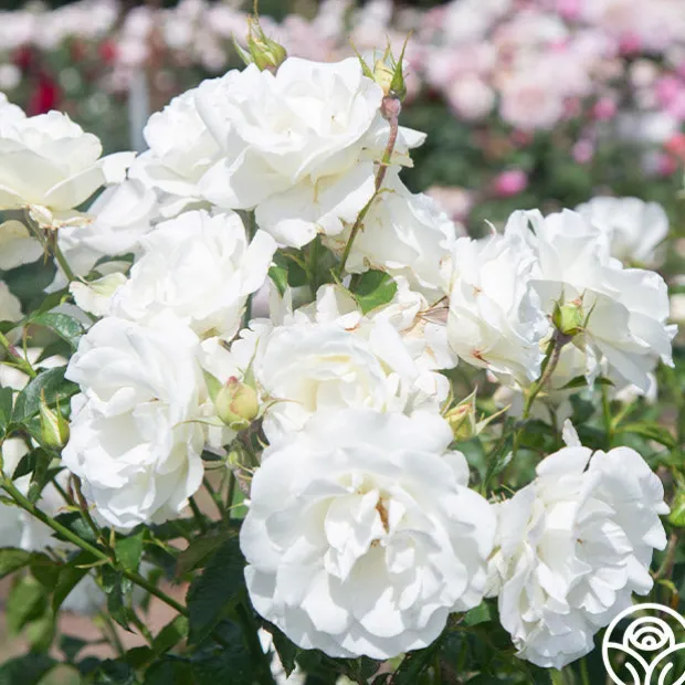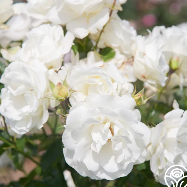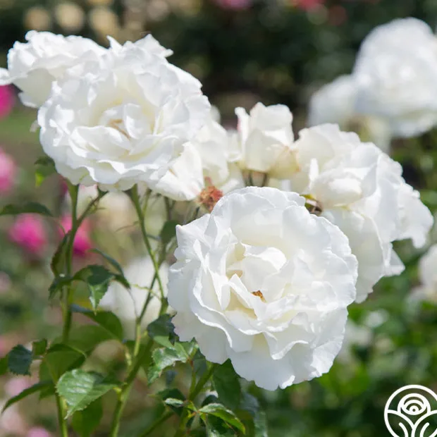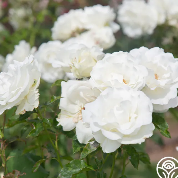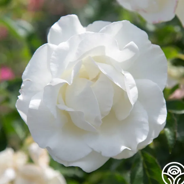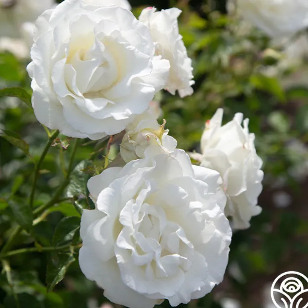 This classic, exhibition-style, pure white, continually blooming Hybrid Tea rose has earned many awards and is known for being one of the best white roses for the garden. Crystalline™’s very large, 5.5” blooms emit a spicy and sweet fragrance from her beautiful clusters. Expect her to bloom in flushes throughout the season, performing best in zones 6-10. Watch out for her thorny stems!