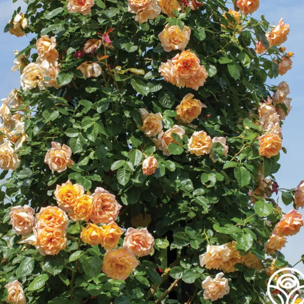 Outstanding clusters of large, yellow-apricot flowers appear early in the season and continue to put on a spectacular show of flushes throughout the warm season. This prolific bloomer with large, cupped blooms has excellent disease resistance and holds up well in the heat! She will make a gorgeous addition to your cut flower arrangements. Garden Sun™ is the perfect Climbing Rose to adorn an arch, pillar, trellis, or other garden structure.