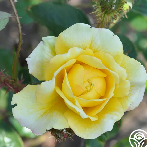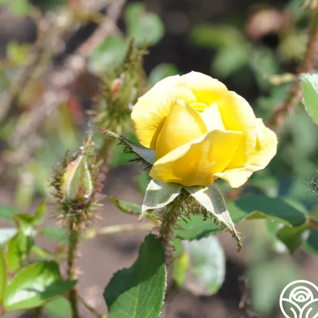 Golden Moss was bred by Pedro Dot, mentor to Griffith Buck, in Spain in 1932. This Moss Rose is moderately fragrant and her shockingly beautiful, yellow blossoms are enhanced by darker shading. Her buds are globular in a peachy-yellow coloring with well-mossed sepals. Expect her to be a once-bloomer in spring or summer.