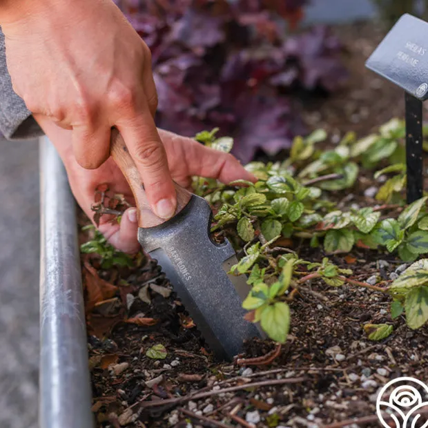 The Hori Hori Knife is a versatile gardening tool designed for digging, weeding, transplanting, and more. Its heat-tempered, hollow-back stainless steel blade features a full tang for durability, a built-in twine cutter, and a comfortable walnut handle for a secure grip.