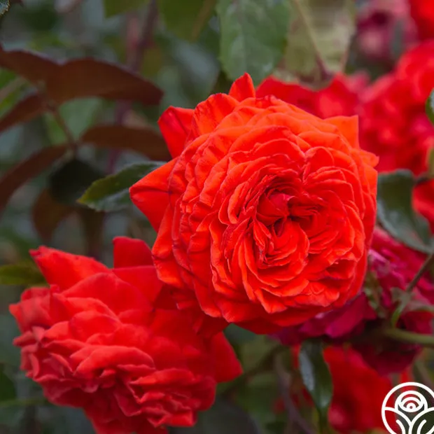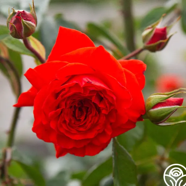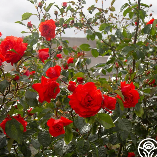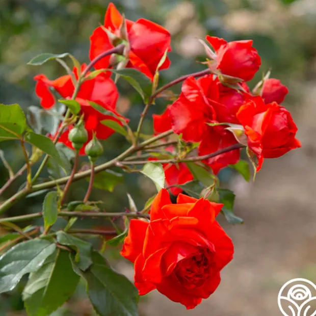 Salita™ is a vibrant orange-red rose with tall canes perfect for arrangements. With blossoms of 3.5” in diameter and up to 40 petals per bloom, expect her to stand out in the garden. Her glossy, green foliage makes an excellent backdrop for her bright blooms. Expect her to climb to about 6-9’ tall.