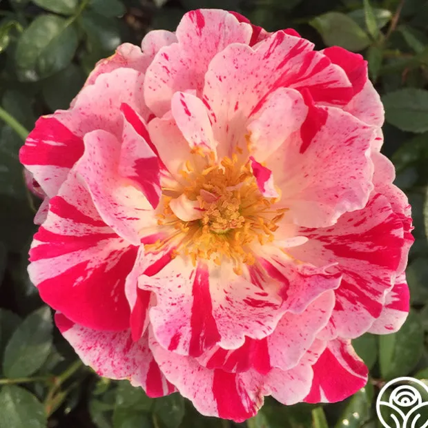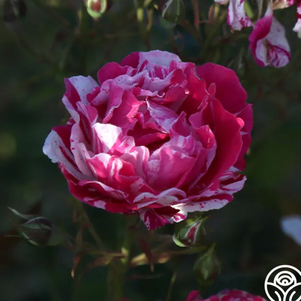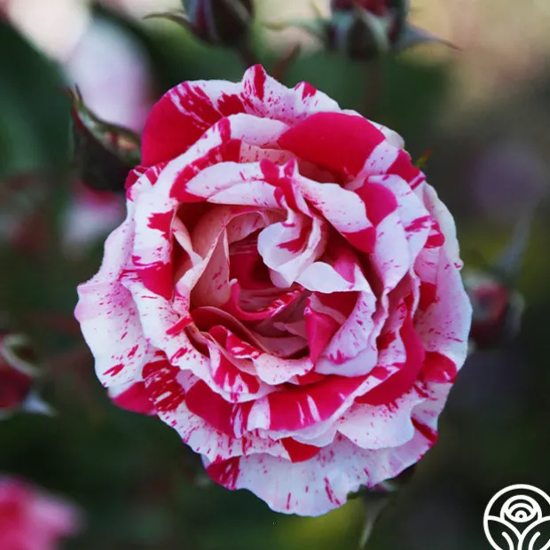 Named for America after September 11, 2001, Stars ‘n’ Stripes Forever™ produces hundreds of striking 2″ blooms with 10-16 in sprays. We love using this rose for arrangements to enjoy indoors too! She has a slightly spreading habit and even growth with rich, deep green foliage. Her showy blooms of white and dark pink stripes will command attention for this continually blooming bush.