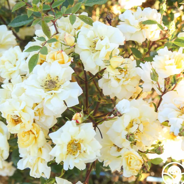 Introduced by Ralph S. Moore, Sunshine Sally is a climbing miniature that can be grown as a Shrub up to 5’ tall. Her double blooms of 17-25 petals are borne in clusters or sprays. We recommend this moderately fragrant, light yellow rose for zones 6-9.