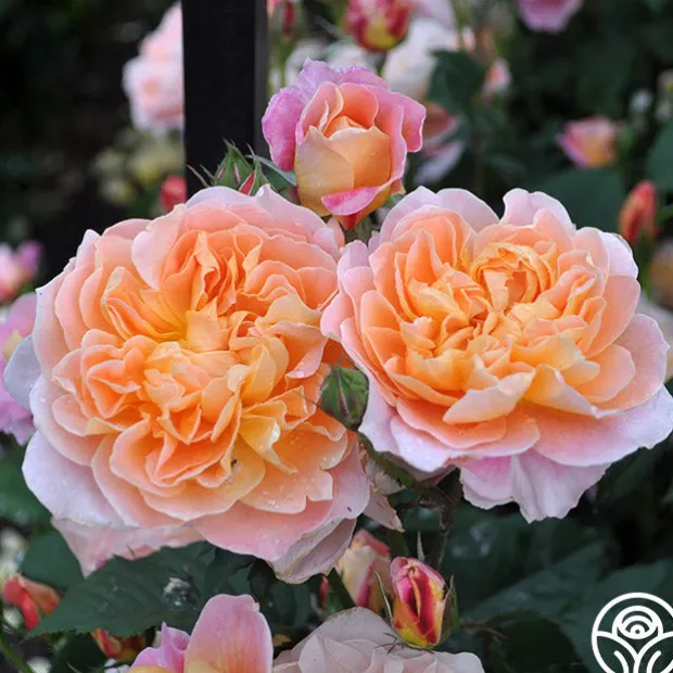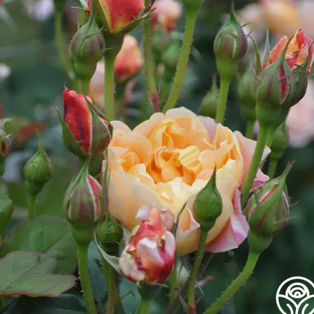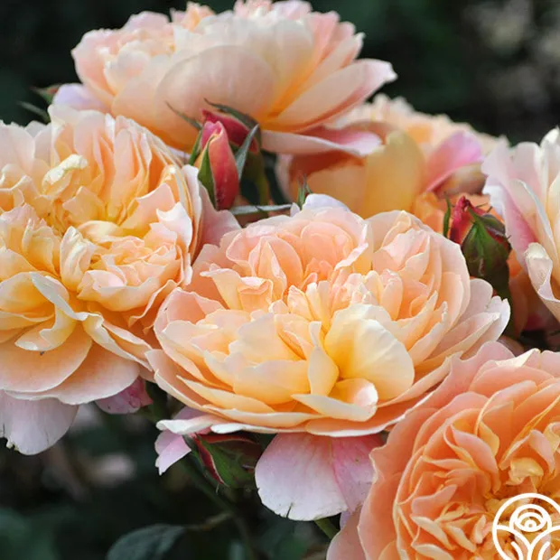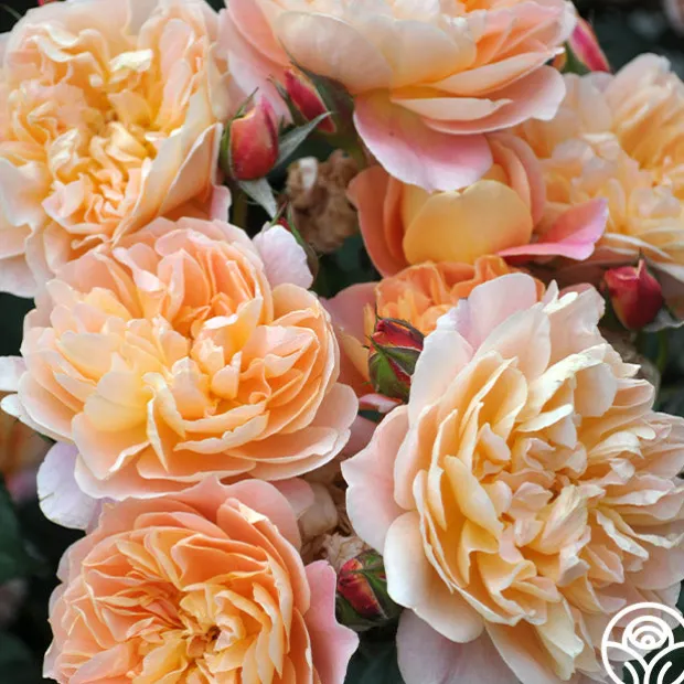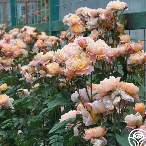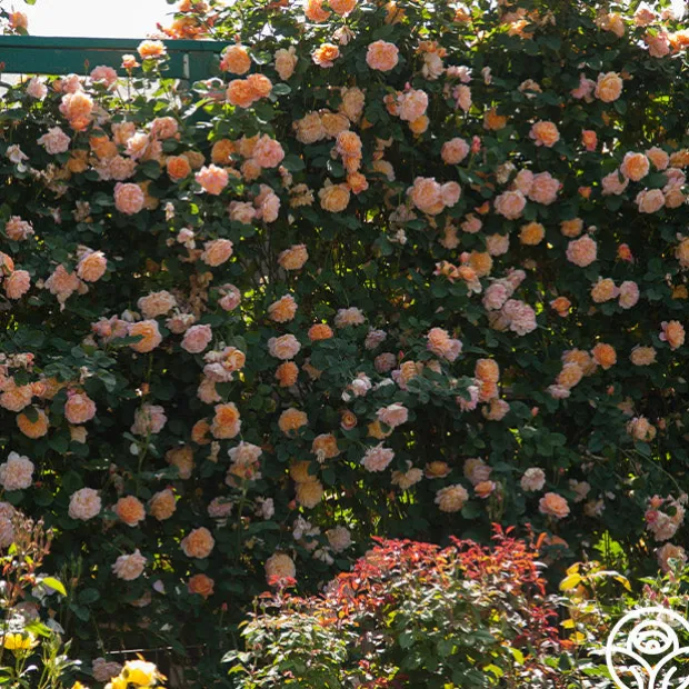 MUST HAVE! Bred right here at Heirloom Roses, The Impressionist™ is a stunning apricot blended rose with fully double, 4″ blooms of 100+ petals. Depending on the age of the bloom, expect to see a wide range of colors such as apricot, salmon, creamy pink, peach, coral, orange red, and gold. This Climber will train well on a trellis or fence topping out around 9-11’ tall and is perfect for a cut flower garden. We love her myrrh/old garden rose fragrance and unique, dark blue-green foliage. Check out all of The Impressionist’s amazing five star reviews and you’ll see why she easily wins Best in Show over and over again.
