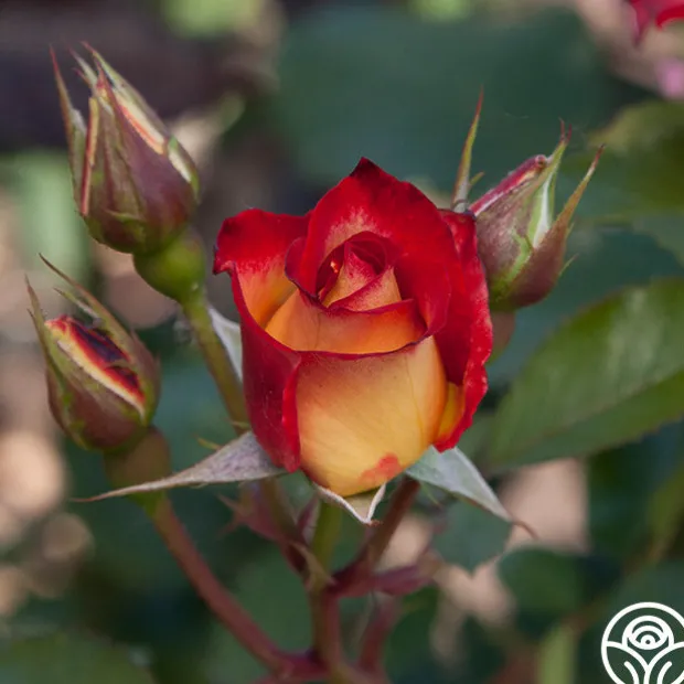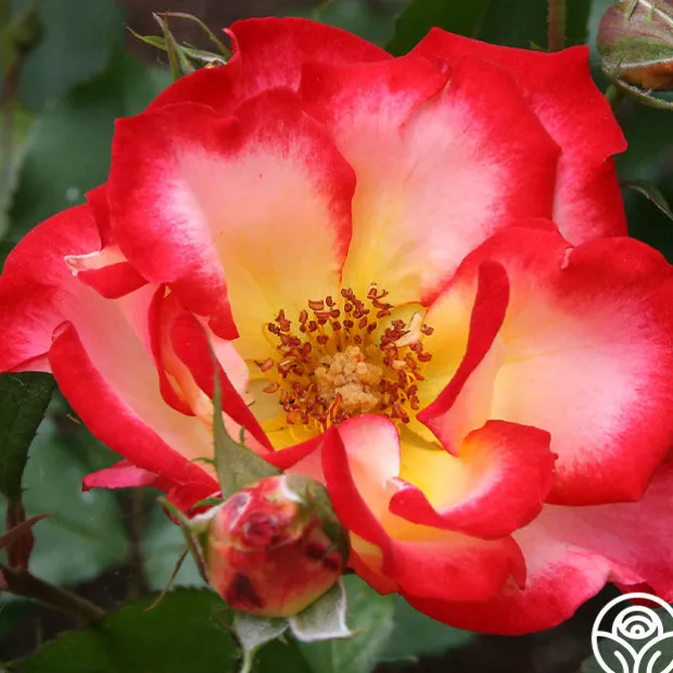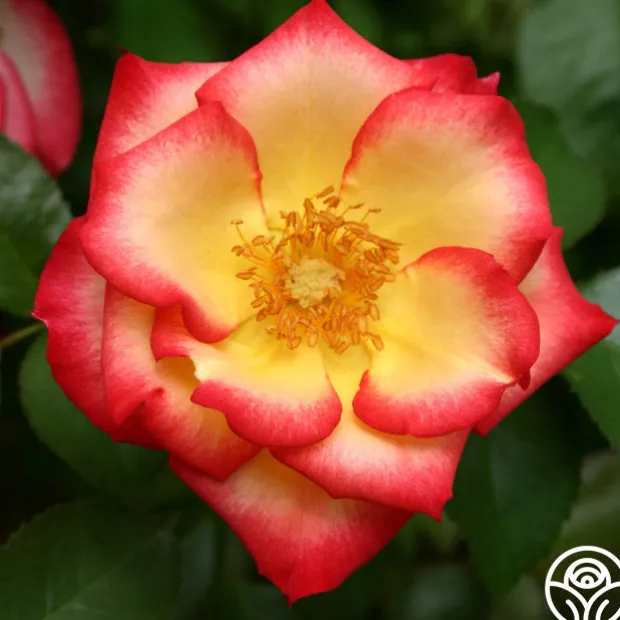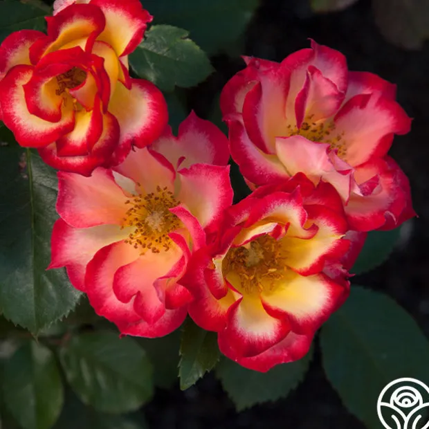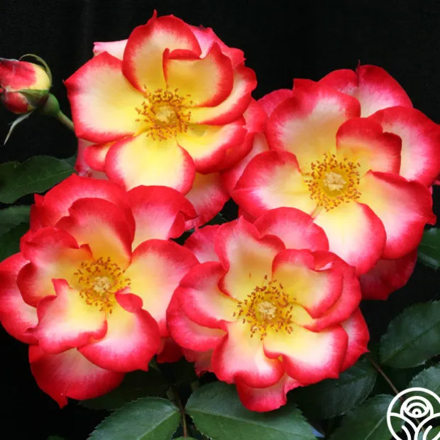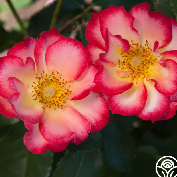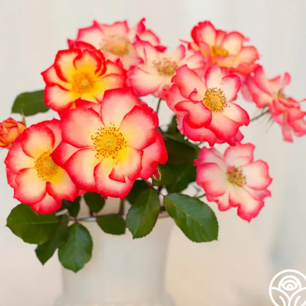 Betty Boop™ has medium to large, semi-double 3″ blooms of yellow-ivory edged with cherry-red that open to show golden centers. One of the most colorful of roses, her blooms are long lasting and have a lovely, fruity fragrance. Betty Boop™ is a naturally rounded plant with glossy, dark-green leaves that show off her bright blooms. She’s hard not to notice!
