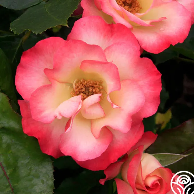 GOLD MEDAL WINNER! The large, eye-catching, semi-double blooms of Birthday Girl are a beautiful blend of creamy-white and cherry red with a ruffled appearance. This Shrub rose grows in an attractive, mounded shape, wider than it is tall and her wonderful flowers are set off by a background of rich, deep-green, leathery foliage. This continuously blooming rose is also very disease resistant. Birthday Girl has earned many Gold Medals including: Gold Medal at Bagatelle, Gold Medal at Monza, Gold Medal at Rome, Gold Medal at Saverne, Gold Medal at Baden-Baden. She is simply outstanding!