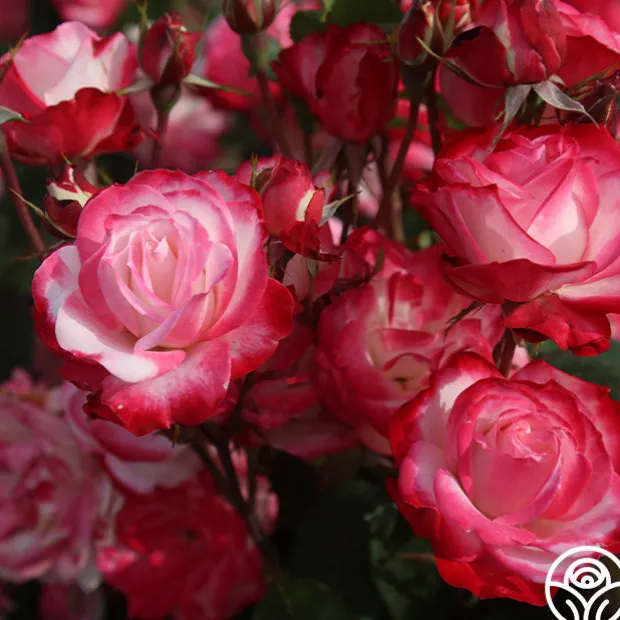 Cherry Parfait™ is a delicious rose with creamy petals dripping in cherry red. Her 4.5” cupped blooms with 30+ petals pop against her intense, dark foliage. She almost looks unreal! Cherry Parfait™ is extremely hardy and performs in all climates and stays compact at 3’ x 3’ so she can be added to every garden – large or small. We love her in beds, borders, or pots!