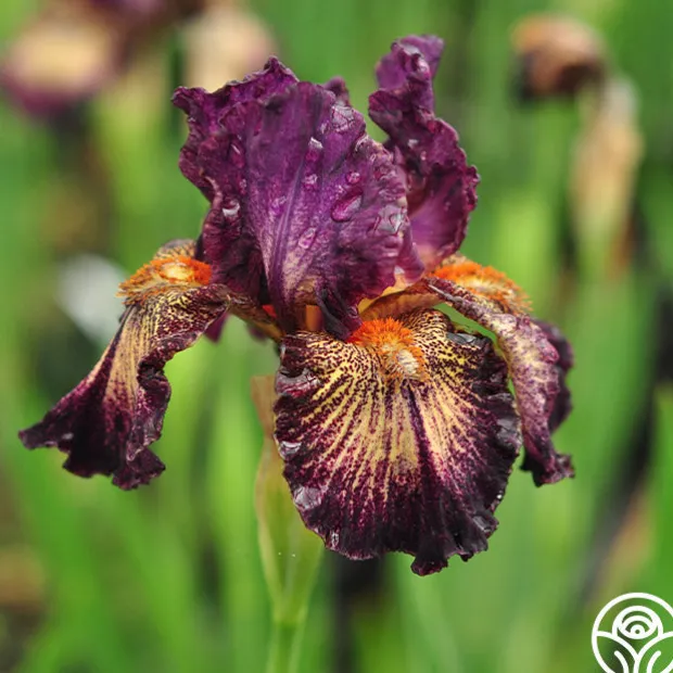Note: Bulbs ship starting in October based on availability and your zone, unlike other products. Plant around or after your first frost but before the ground freezes. Drama Queen is an award-winning bearded Iris known for its bold color and oversized blooms. It has deep purple standards and golden-buff falls streaked with wine-red veins. Rusty orange beards stand out against the dark tones. The flowers are large and frilly, making a big impact in the garden. Blooming in mid-spring on tall 38″ stems, it’s hardy in Zones 4–9, deer resistant, and great for cut flowers.