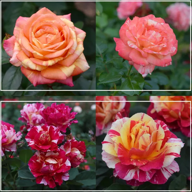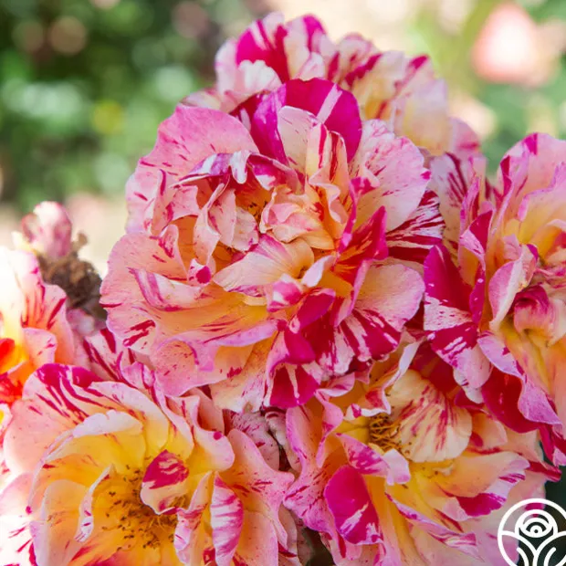 Maurice Utrillo® – Named for the French painter, Maurice Utrillo® is an easy to grow rose with petals painted in splattered red, white, and yellow stripes. This Hybrid Tea produces 3-4″, cupped blooms. He is disease resistant and makes a great gift for new rose gardeners as it is easy to care for, blooms in flushes throughout the season, and boasts a lovely moderate fragrance.