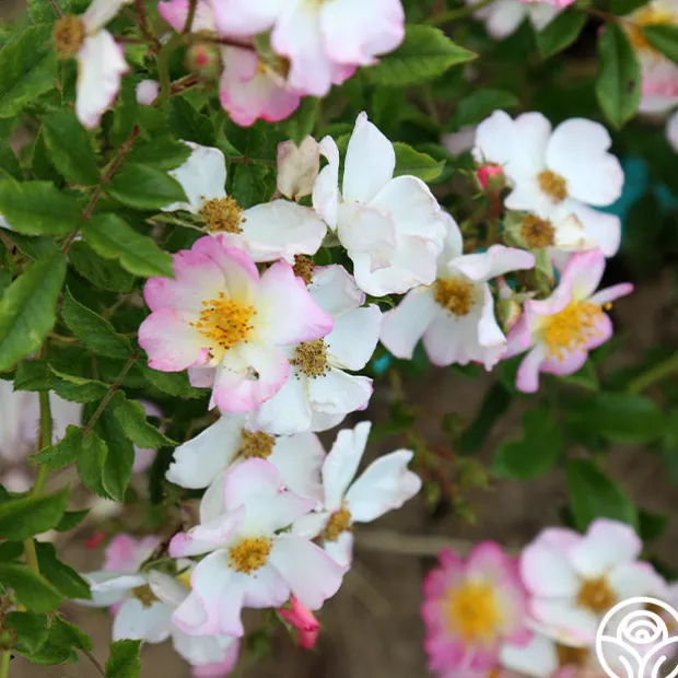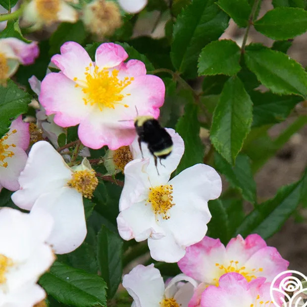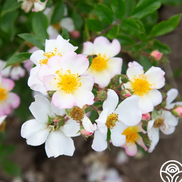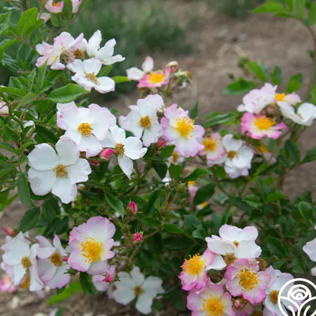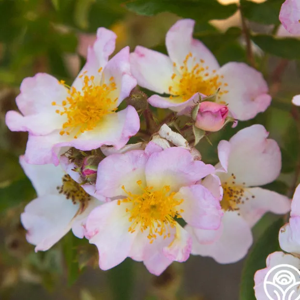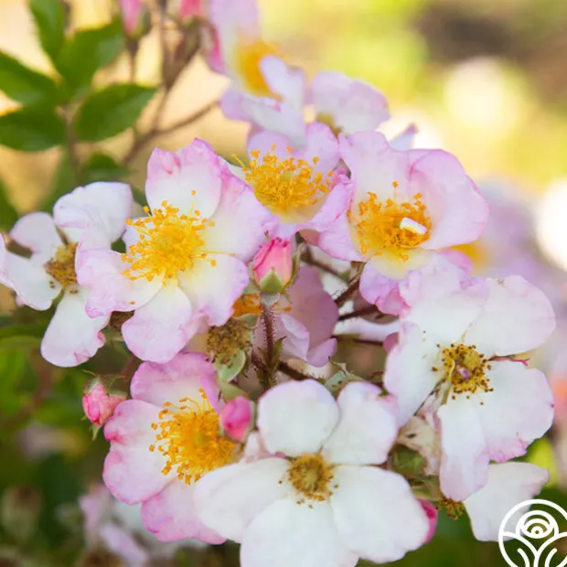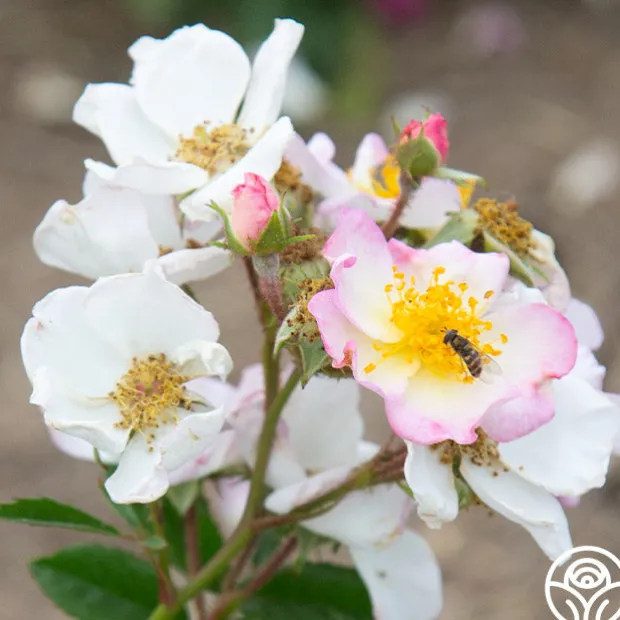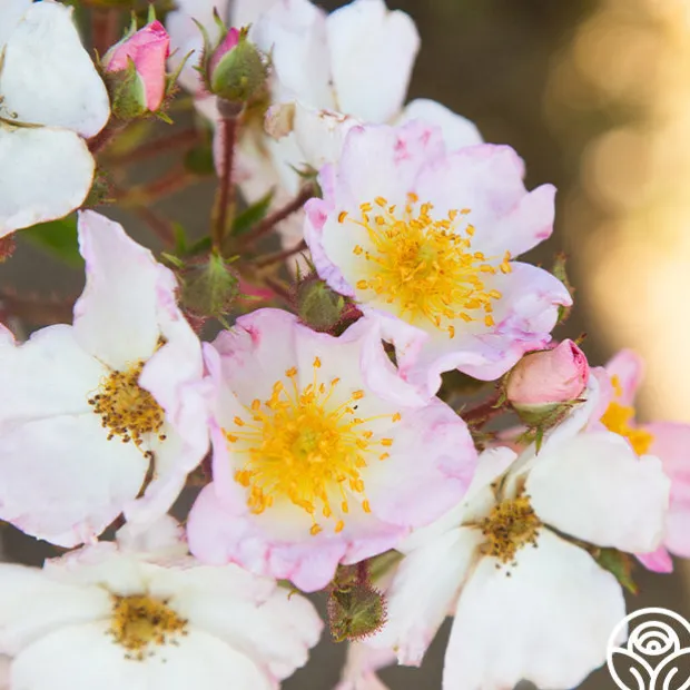 HEIRLOOM’S OWN! Dreaming™ is a beautiful, continuous blooming Rambler Rose from our breeding program. Her delicate, simple, five petaled, single, 1 ½” blooms have oversized golden centers that make an eye-catching standout in the garden and exude a gentle fragrance. Dreaming™ does best in zones 6-10 and will grow up to 11’ tall. She is a favorite of pollinators too!