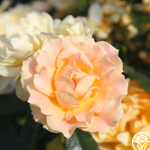 Easy Going™ has delightful, cupped 4-5″ blooms with 30+ petals of golden yellow with apricot to peach shading. Her flowers have a mild honey fragrance and will bloom repeatedly throughout the season against glossy, medium green foliage. She is a beautiful rose for zones 5-10.