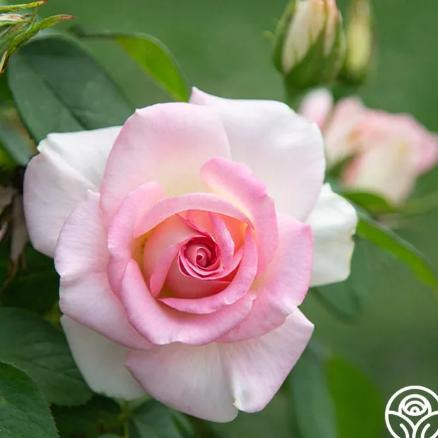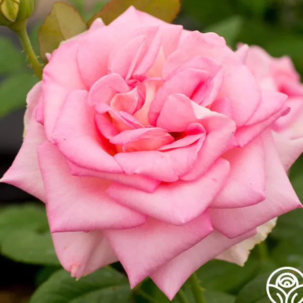 Falling In Love™ (the rose) features classic blooms of warm pink with a creamy reverse coloring and a strong rose/ fruit fragrance. Like the act of falling in love, this rose is not perfect but produces her luscious flowers on very thorny stems. Treat her gently or you might just get pricked! However, she is worth it as a focal point in your beds, borders, or bouquets. Let Falling In Love™ remind you that the most loving relationships require gentleness and care, and can blossom in beauty for a lifetime.