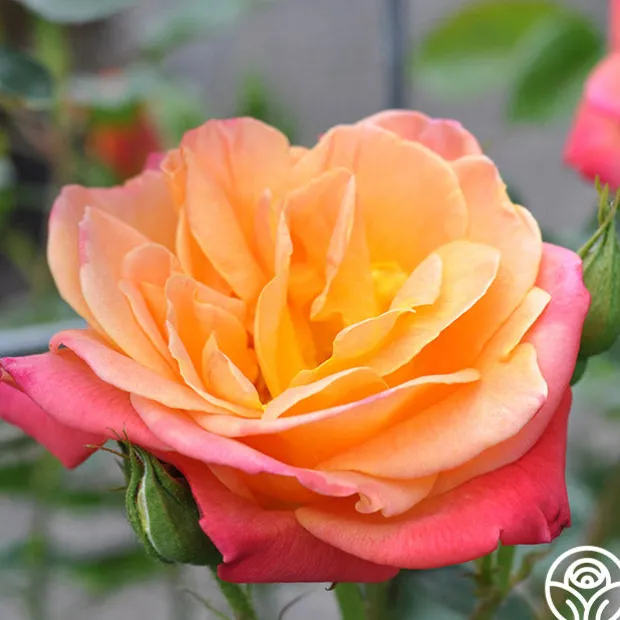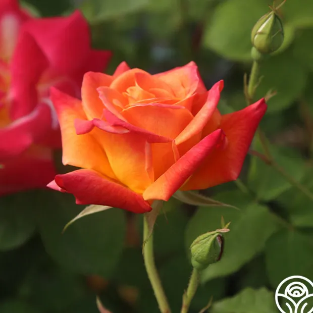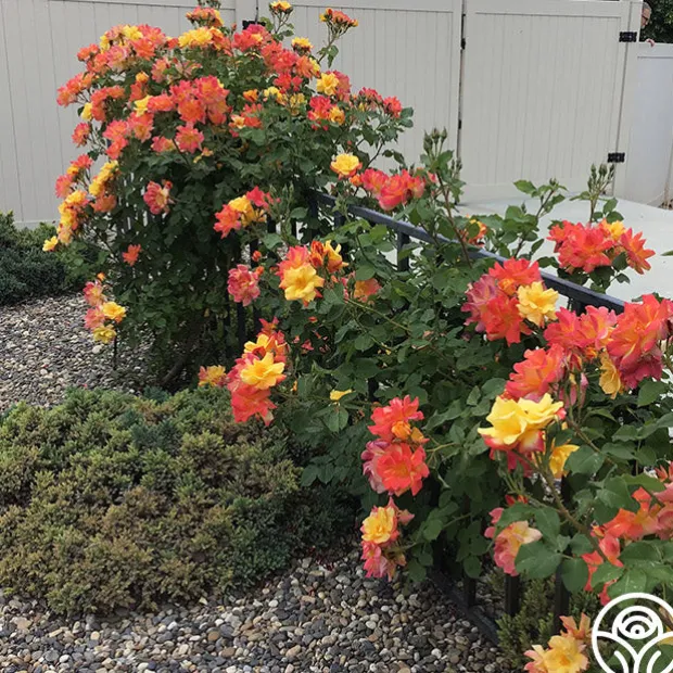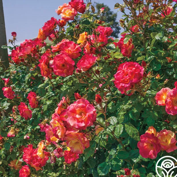 TOP SELLER! This Climber makes a great addition to a cutting garden, and it can be grown as a large climber or as a shrub. Joseph’s Coat produces medium sized, semi-double, 4″ blooms with 12+ petals of cherry-red, deep gold, and orange. He is an upright, hardy, continually blooming plant with dark-green, glossy foliage. Brighten up your garden with the many colors of Joseph’s Coat, and you’ll soon see why he is a top seller!