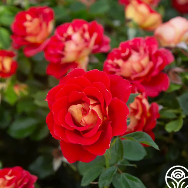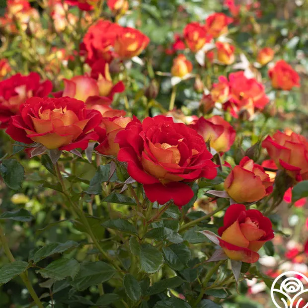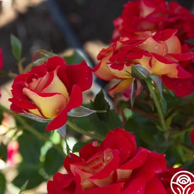 TOP SELLER! Ketchup & Mustard™ is a fun rose that lives up to his name with red petals and a deep yellow reverse. His 3 ¼” flowers are medium to large with 17-25 petals in a clustered form. Expect this fun summer rose to bloom in flushes throughout the season.