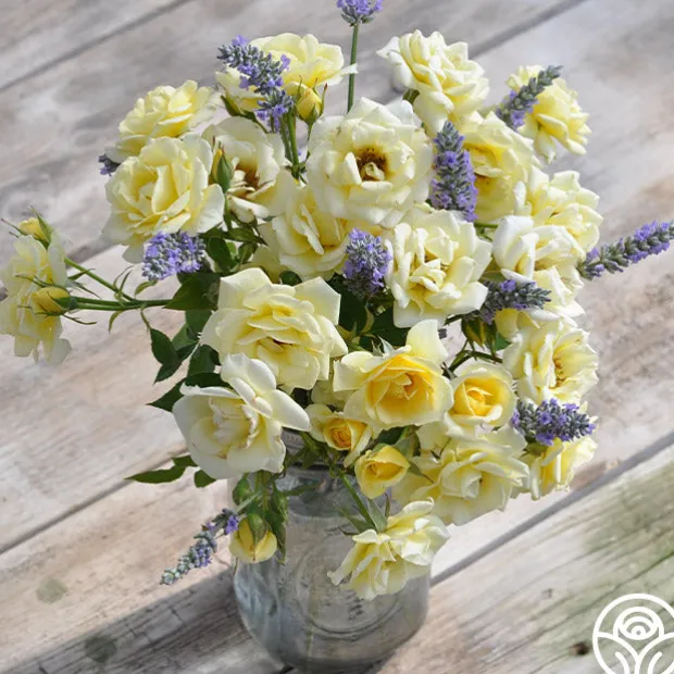 A lovely, very fragrant rose, Lemon Spice is bright yellow and loves the heat of warmer zones. Long pointed buds open into large, high centered, fully 5″, double blooms with a petal count of 25+. The blooms are set against a background of dark, leathery green foliage on a continually blooming plant. Makes an excellent cut rose and can tolerate dappled shade as she seems to make her own sunshine! A cheery addition to any garden!