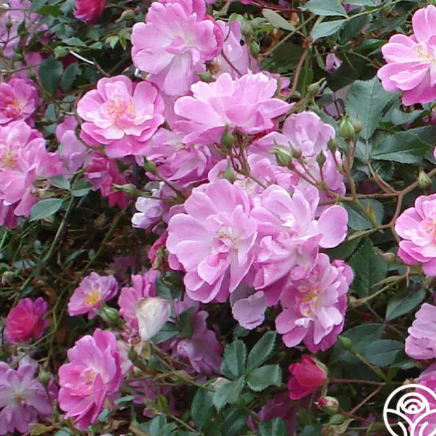 This Groundcover rose is a beautiful, blended mauve and purple color with a strong, spiced fragrance. Magic Carpet will bloom in flushes producing 2″, semi-double, cupped flowers and will invite many pollinators to your garden. The glossy, dark green leaves accentuate this excellent spreading plant.