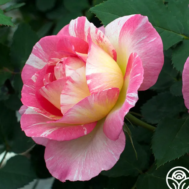 Striped with brush strokes of pink, yellow, and cream, Marc Chagall™ is a true beauty. It is characterized by strong disease resistance, heavy repeat flowering, a mild fruity fragrance, and 3″-4″ blooms. Marc Chagall™ would make a great border or container rose.