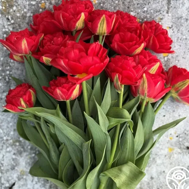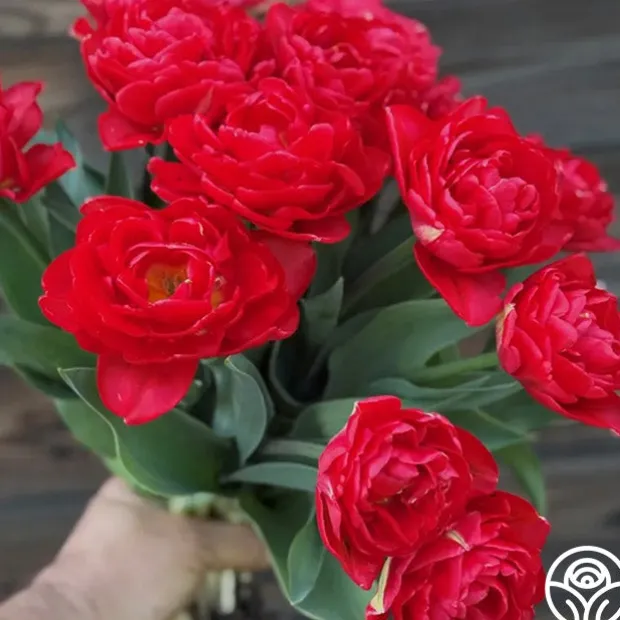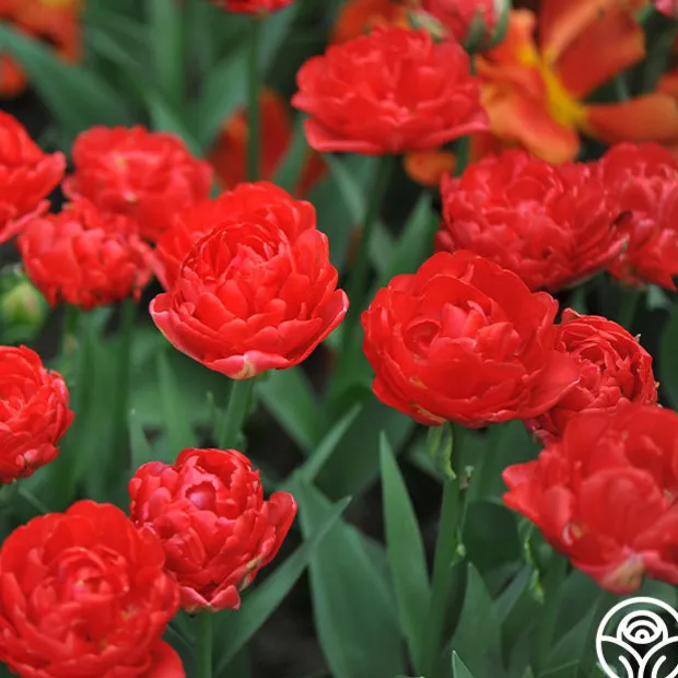 Note: Bulbs ship starting in October based on availability and your zone, unlike other products. Plant around or after your first frost but before the ground freezes. Pamplona is a double-early Tulip with rich, peony-shaped blooms in deep scarlet-red, offering a full rounded form that stands out in spring borders. Flowering from early to mid-spring on sturdy 12–16″ stems, its bold color and compact habit make it a strong choice for both garden beds and cut arrangements. Hardy in Zones 3–8, Pamplona is easy to grow in full sun or part shade.