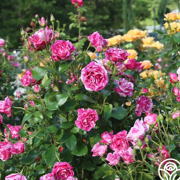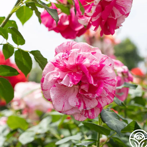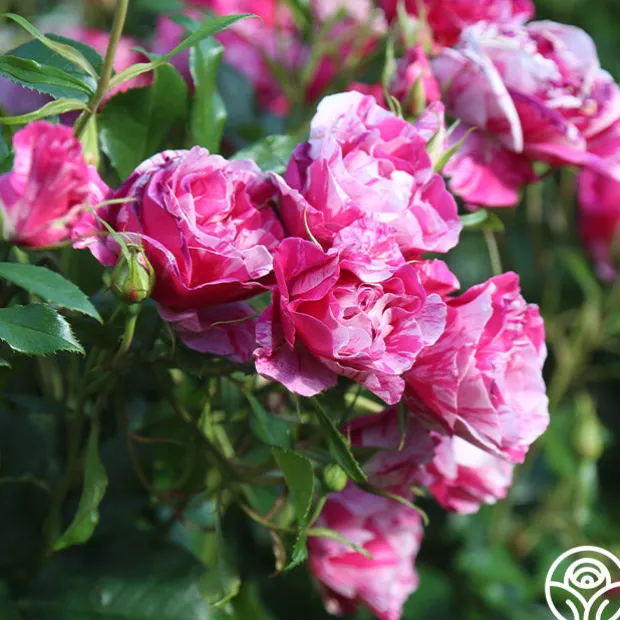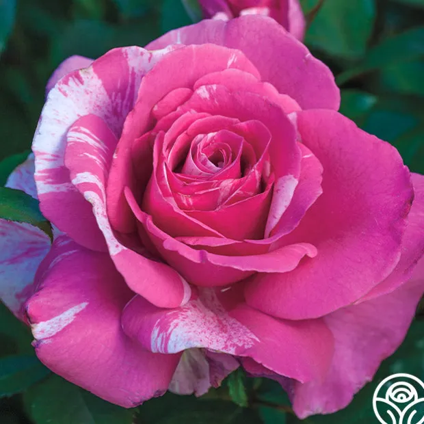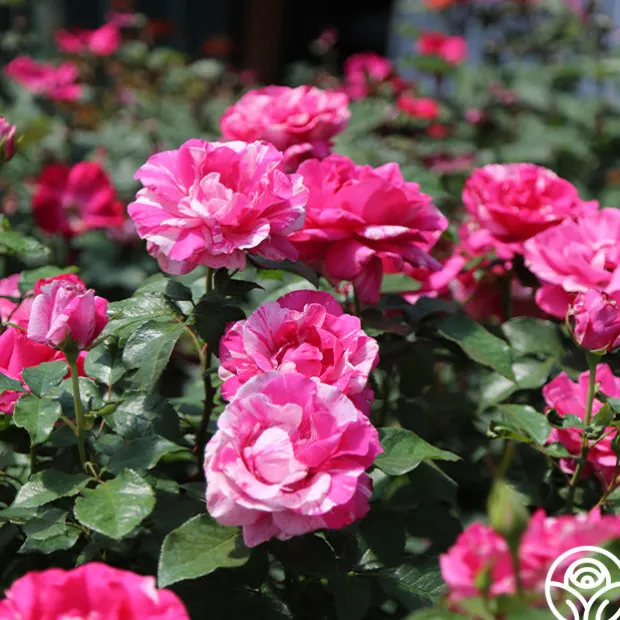 Parade Day™ offers all of the childhood excitement of a local parade with large blooms of an intense, eye-catching pink splashed and speckled with white. This rose is reminiscent of streamers and sparklers at a small-town parade. She produces incredibly prolific blooms in clusters with excellent color retention and a strong, citrusy fragrance with a hint of spice. Her large, glossy green leaves shine as the backdrop for her 4-5” blooms. This rose makes the grade and is a truly spectacular rose. We love her in the cutting garden and performs well in pots on patios or balconies too! What’s not to love?