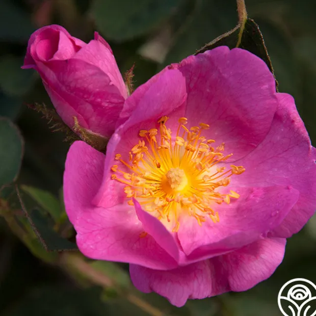 Centifolia AndrewsII is a hard-to-find, classic rose with sweet, deep pink, single blooms of about 4-8 petals each. He is an upright-growing shrub with mossed buds and is sometimes categorized as a Wild Rose or Moss Rose. He will be a favorite of pollinators during his splashy, single blooming in early summer. Since his introduction in the early 1800s, Centifolia AndrewsII has been a delightful addition to gardens in zones 6-9.