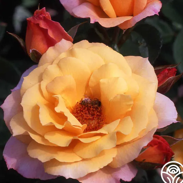 A colorful Climber of great beauty, Royal Pageant™ is a lovely blend of apricot-amber and golden yellow, 5” flowers produced in profusion on a sturdy, continually blooming plant. She is very fragrant and makes a good cut flower for arrangements. Use her as a Climber or a Shrub depending on your garden preferences.