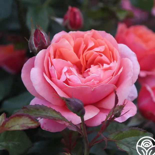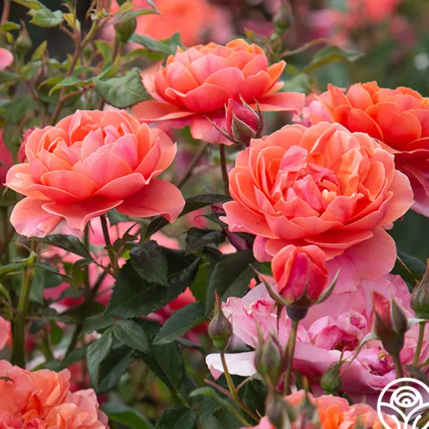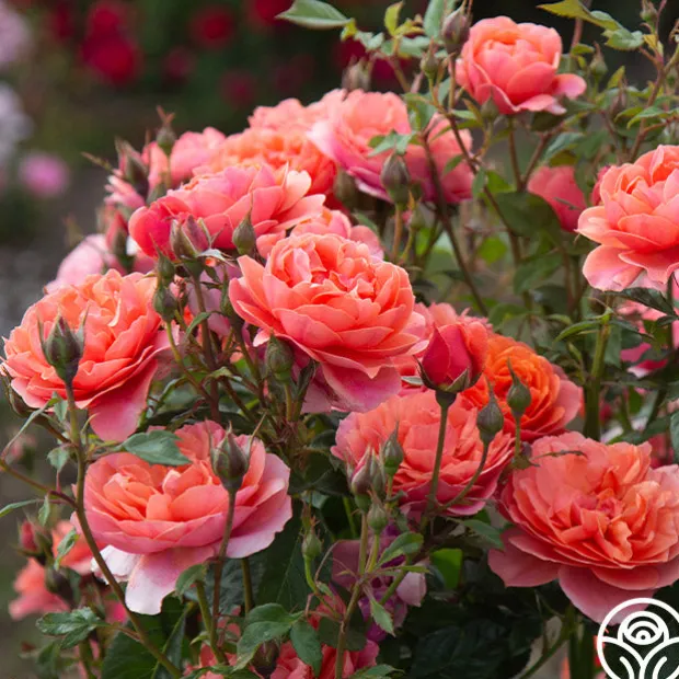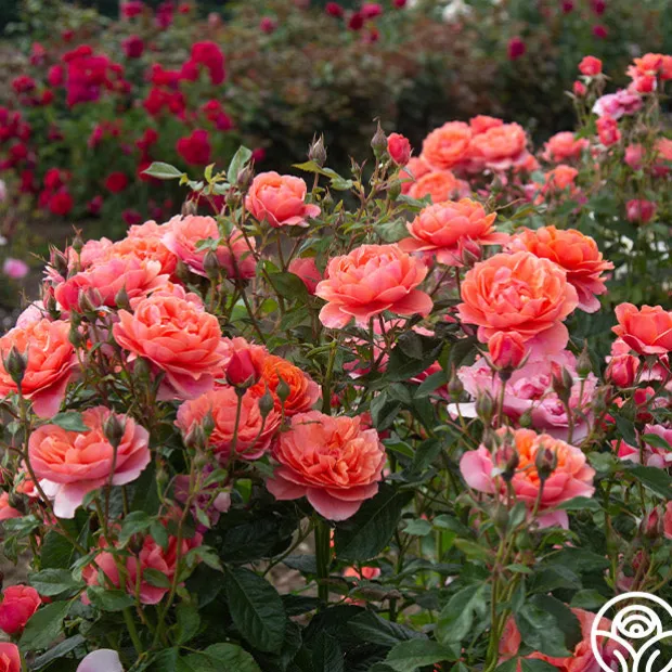 Safari™ has deeply cupped, old-fashioned blooms with the coloring of an African sunset that will be a definite attraction in your garden. Her soft, coppery-bronze flowers shade to rich coral toward the outer edge of the blooms which are produced in great abundance. Expect Safari™ to remain a compact, bushy plant with 3-4″ bloom of 35+ petals.