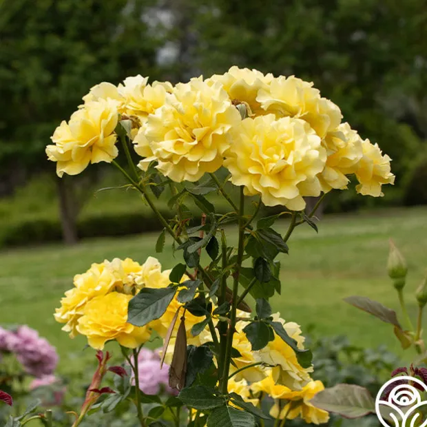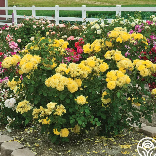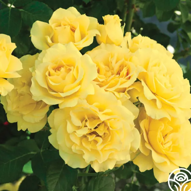 Sparkle & Shine™ stands out in the garden with clusters of bright, long lasting flowers produced on a rounded bushy plant with glossy foliage. We love this bright yellow Floribunda as an easy to care for hedge full of blooms. With very little care, she will brighten up any part of the garden with ease.