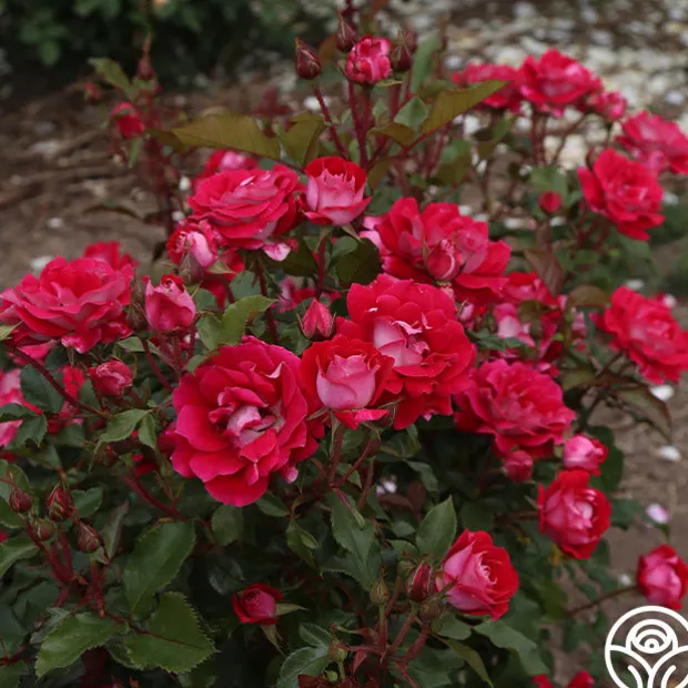 Take It Easy™, relax and enjoy life! You won’t have much work to do in the garden with this rose due to her natural disease resistance. Take It Easy™ has dark green, shiny foliage to showcase her many clusters of classic red buds and flowers with a slightly pink reverse. Flowers begin as pointy and very elegant buds fading just a bit as the petals age. Take It Easy™ is a blooming machine and will do all the work so you can relax and enjoy!