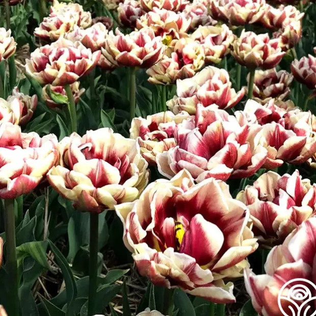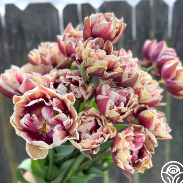 Note: Bulbs ship starting in October based on availability and your zone, unlike other products. Plant around or after your first frost but before the ground freezes. Wyndham is a late-blooming, double Tulip with a unique, moody look. Its pointed petals curve inward slightly, with soft beige edges and outer petals that show a blend of dusty cocoa and purple tones. Flowers grow on 18″ stems and prefer full sun. Grows well in Zones 3–8.