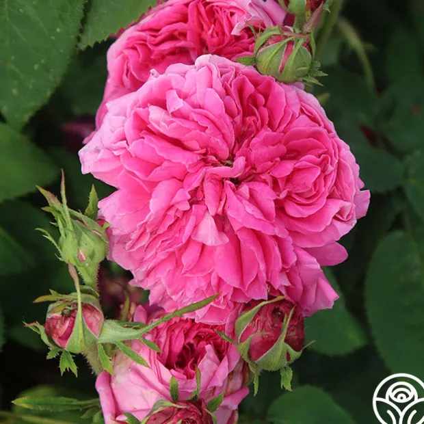 Yolande de Aragon is a beautiful Shrub that may also be grown as a Climber. Her pinkish-purple blooms open with lighter outer petals and have an intense fragrance. Her flowers are large, very full, cupped, and quartered. Yolande de Aragon can produce a second flush in the fall.